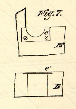 The position of the support, G, is regulated by the screw, e, which passes through it and rests against a metallic button, which is inserted in the stop piece, F.